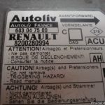8200280994AH 8200280994 AH Autoliv 603047500 603 04 75 00 / Calculateur d'airbag / Renault Megane