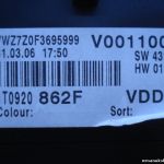 SW 4312 HW 011 1T0920862F 1T0 920 862 F VDD VWZ7Z0F3695999 V0011000 / Instrument tachymètre de cluster VW Caddy Touran 2.0 TDI 16V 2005