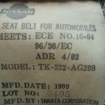 TK522AG298 TK 522 AG298 TK-522-AG298 96/36/EC ADR 4/02 0405 / Boucle de ceinture de sécurité avant gauche / Nissan Pick-up III D22