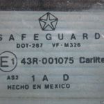 43R001075 43R-001075 DOT287VFM326 AS21AE E1 SAFEGUARD Fenêtre latérale de la fenêtre triangulaire, arrière gauche Jeep Grand Cherokee I
