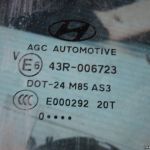 43R006723 43R 006723 43R-006723 DOT24M85AS3 DOT-24 M85 AS3 E000929 20T E6 Porte fenêtre latérale de la fenêtre arrière droite Hyundai ix35