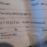 TD27T donneur de réservoir Nissan Terrano Ford Maverick WD21 1987 TD27T 2.7TD 2.7Ltr 73KW Turbodiesel CV-99 1994