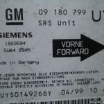 09 180 799 UY 09180799 UY 09180799UY SIEMENS 5WK42905 5WK4 2905 1923594 / Calculateur d'airbag / Opel Astra G GM